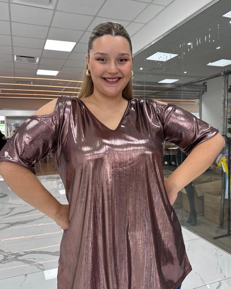 Blusas cielo brillosas color chocolate y plateado